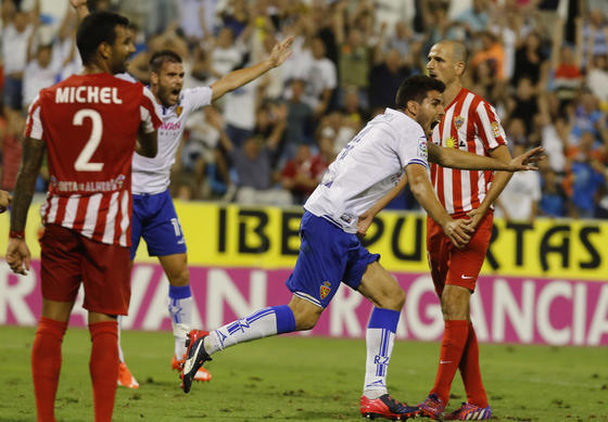 Dos de los grandes favoritos, pese a que el Numancia se aseguraba el liderato tras su victoria in extremis en Gerona, frente a frente en un estadio de Primera. Un partido disputado hace unos años en la máxima categoría, ahora circunstancialmente de plata pero con mucho sabor. Un golpe importante que se podía dar sobre la mesa si los rojiblancos conseguían imponerse. El planteamiento y la intención de Sergi se plasmaron bien en los primeros minutos, con un Almería que controlaba el balón y exponía frente a un Zaragoza contragolpeador.